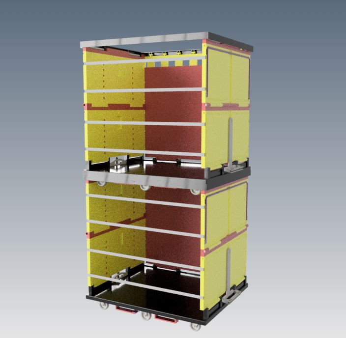 Beladen Transport 2-fach gestapelt im LKW, wenn Wandelemente nicht ausgezogen sind
