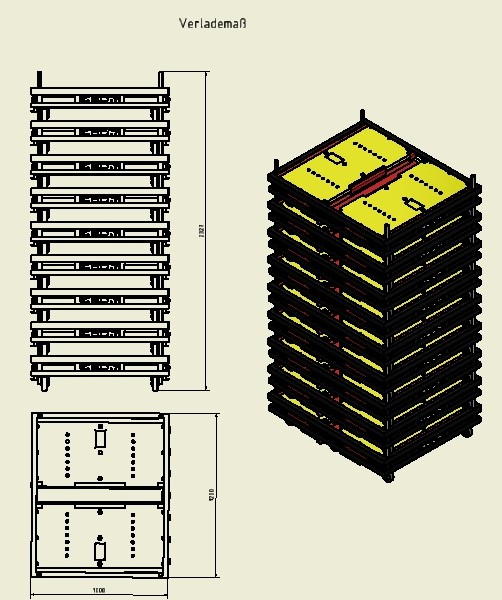 - Beladen Transport 2-fach gestapelt in Standard LKW / nicht ausgezogen
